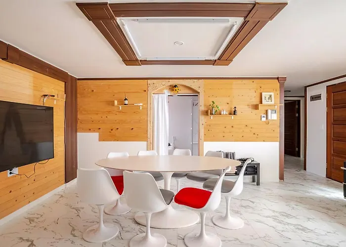 La Villa 5Br Family House, Myeongdong 7 Minutes, Gwanghwamun 10 Minutes, Namsan View, Patio offre un angolo cottura attrezzato con tutti gli elettrodomestici necessari, come un frigo e una vetreria. Gli ospiti possono cenare al ristorante The King's, a 350 metri da questo alloggio. Gli ospiti possono usufruire di mezzi di trasporto come la stazione della metropolitana Dongguk University, a soli 10 minuti a piedi, o la stazione degli autobus Seukara Cinema, accanto a questa struttura.